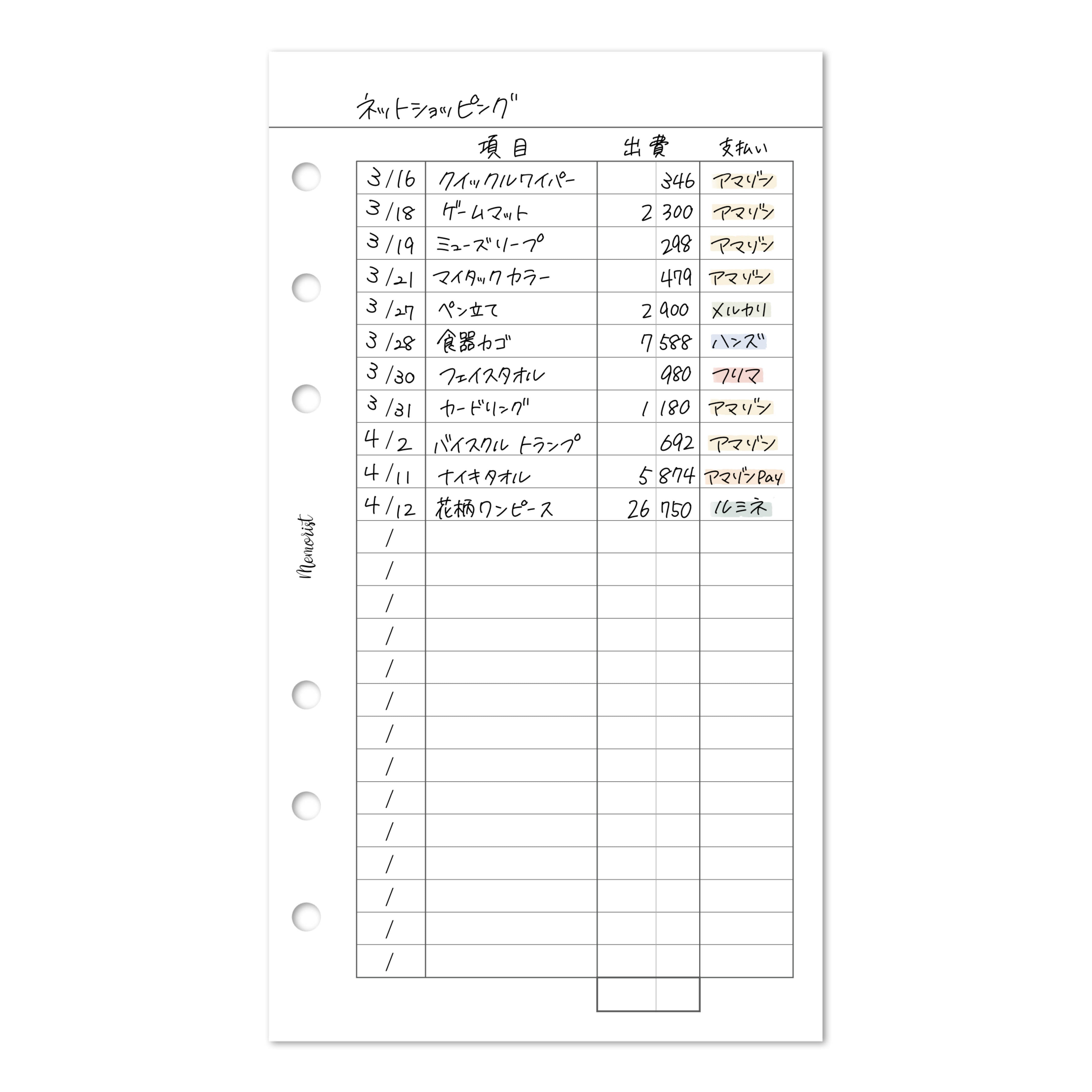 【出費リスト】に具体的な購入内容を書いておけば、バッチリです!