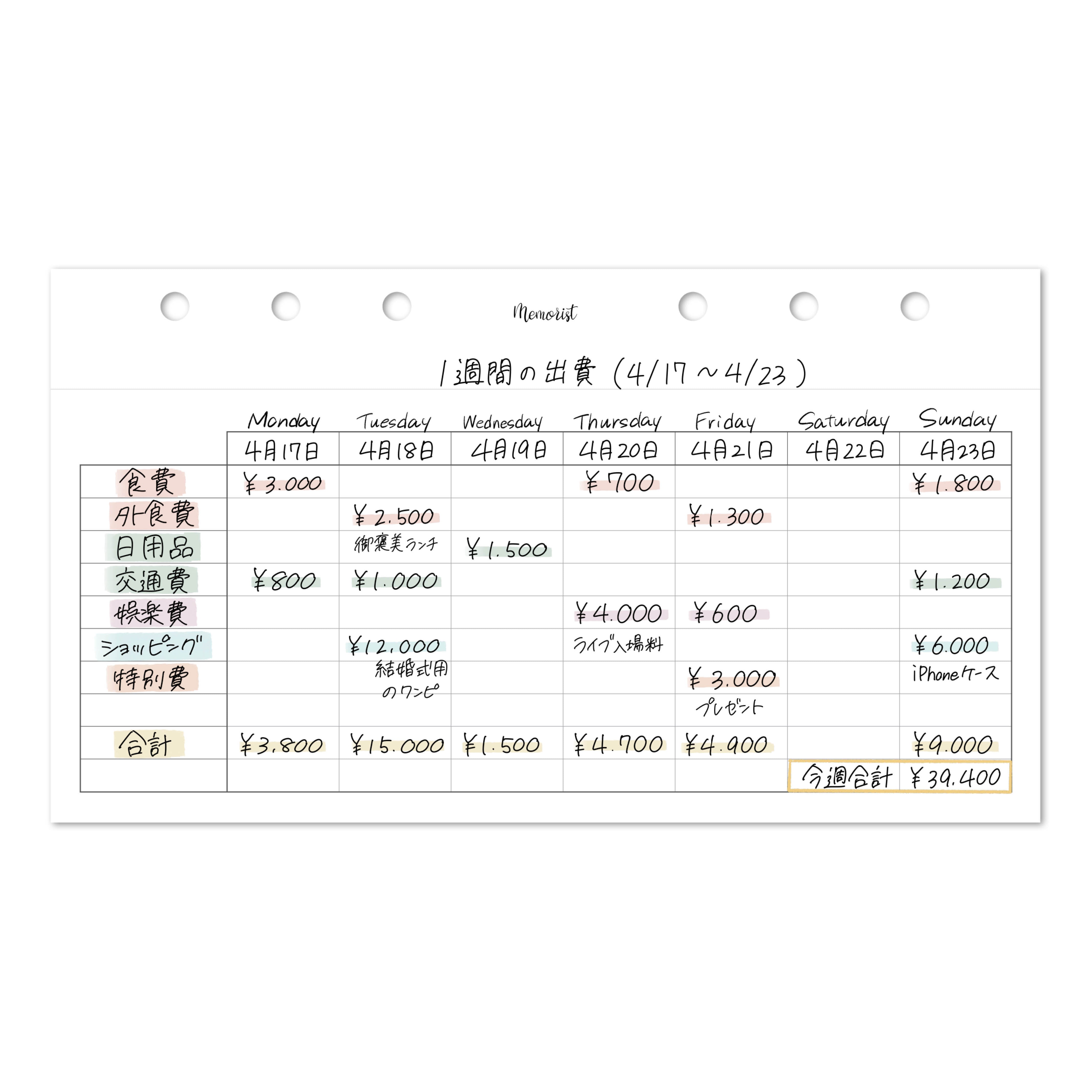 【出費リフィル】を使って、1週間で使ったお金をカテゴリごとに記録!