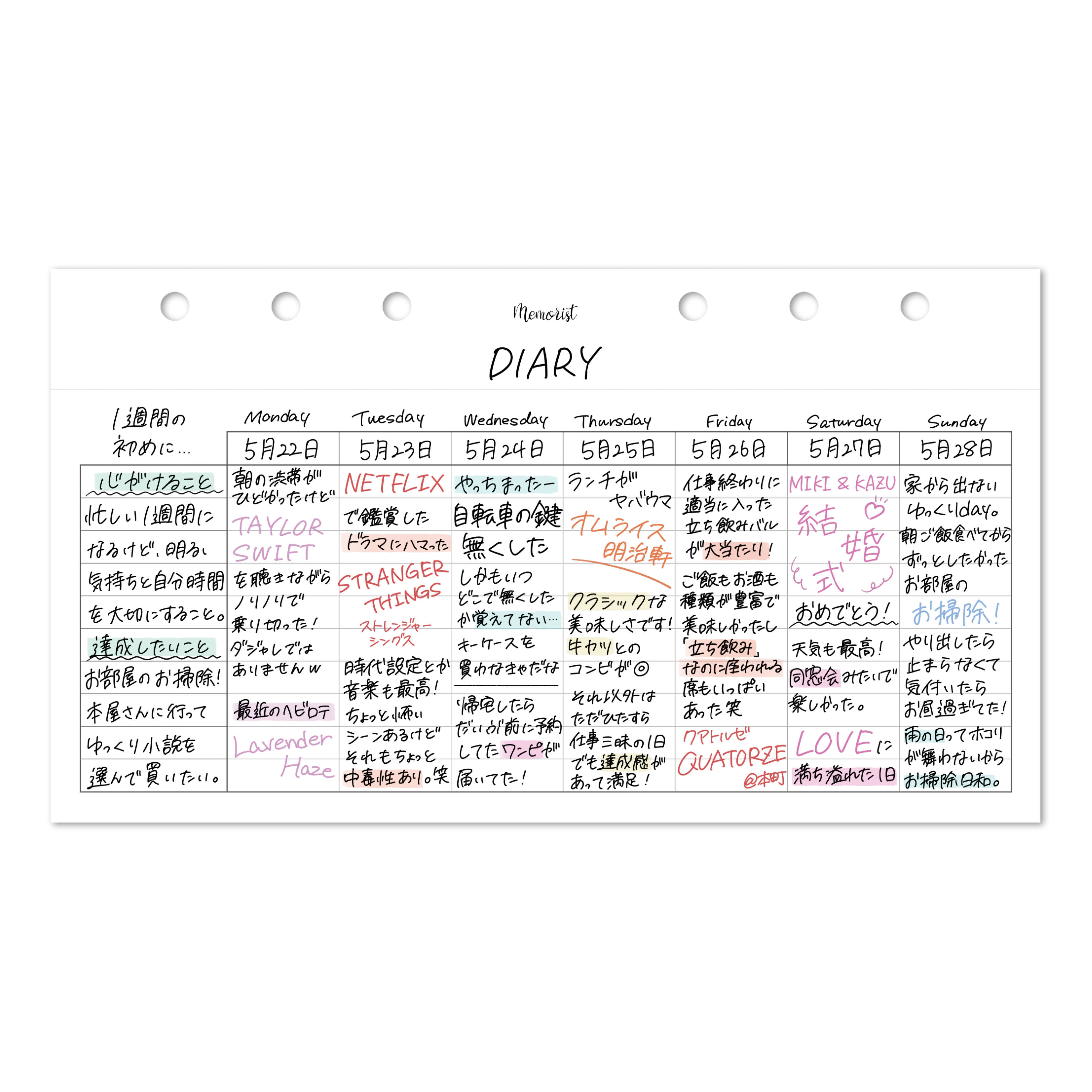 毎日のハイライトを短くメモするだけで、その週の振り返りが楽しくなります。