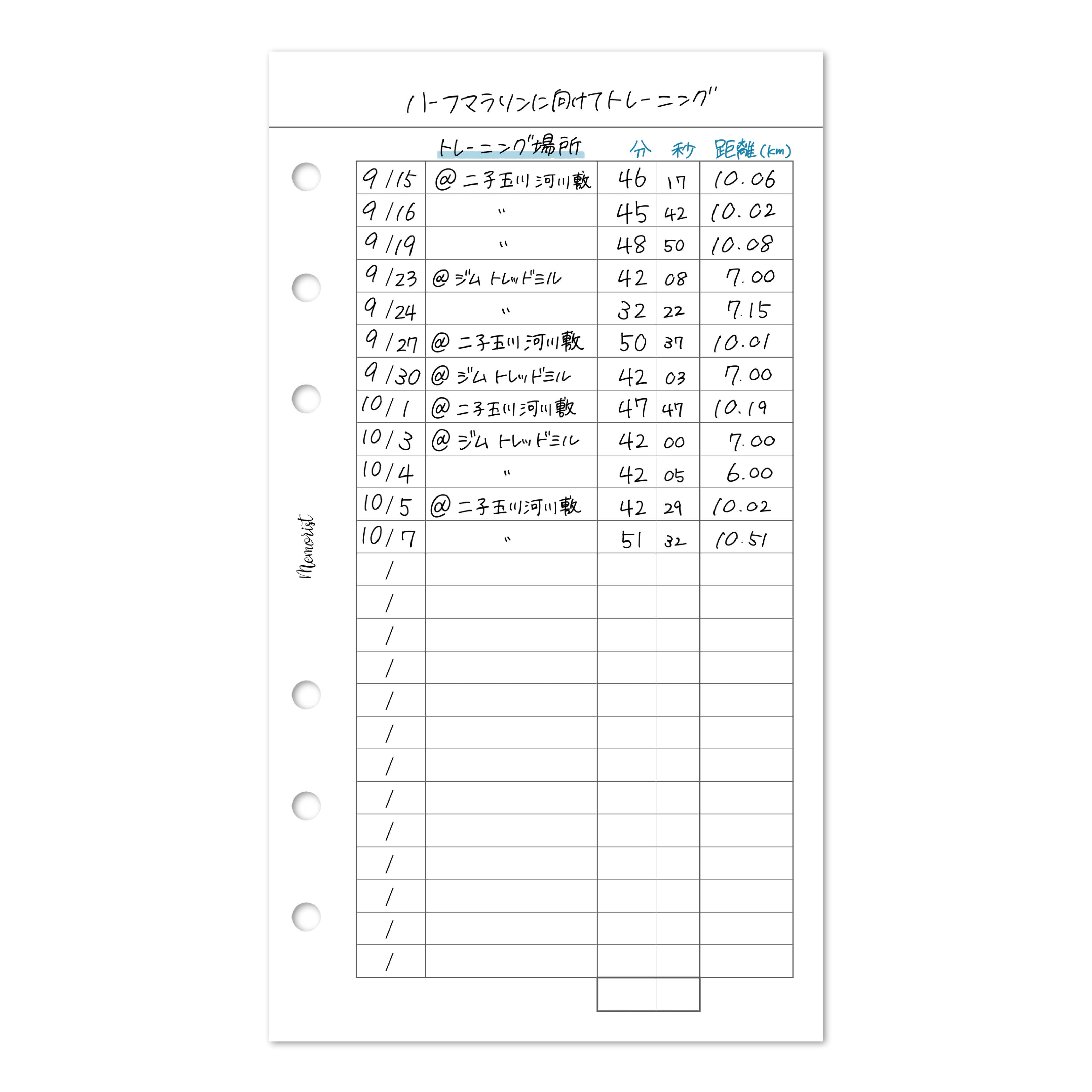 秒数までが大切なランニングの記録は【出費リスト】に書くと見やすいんです。