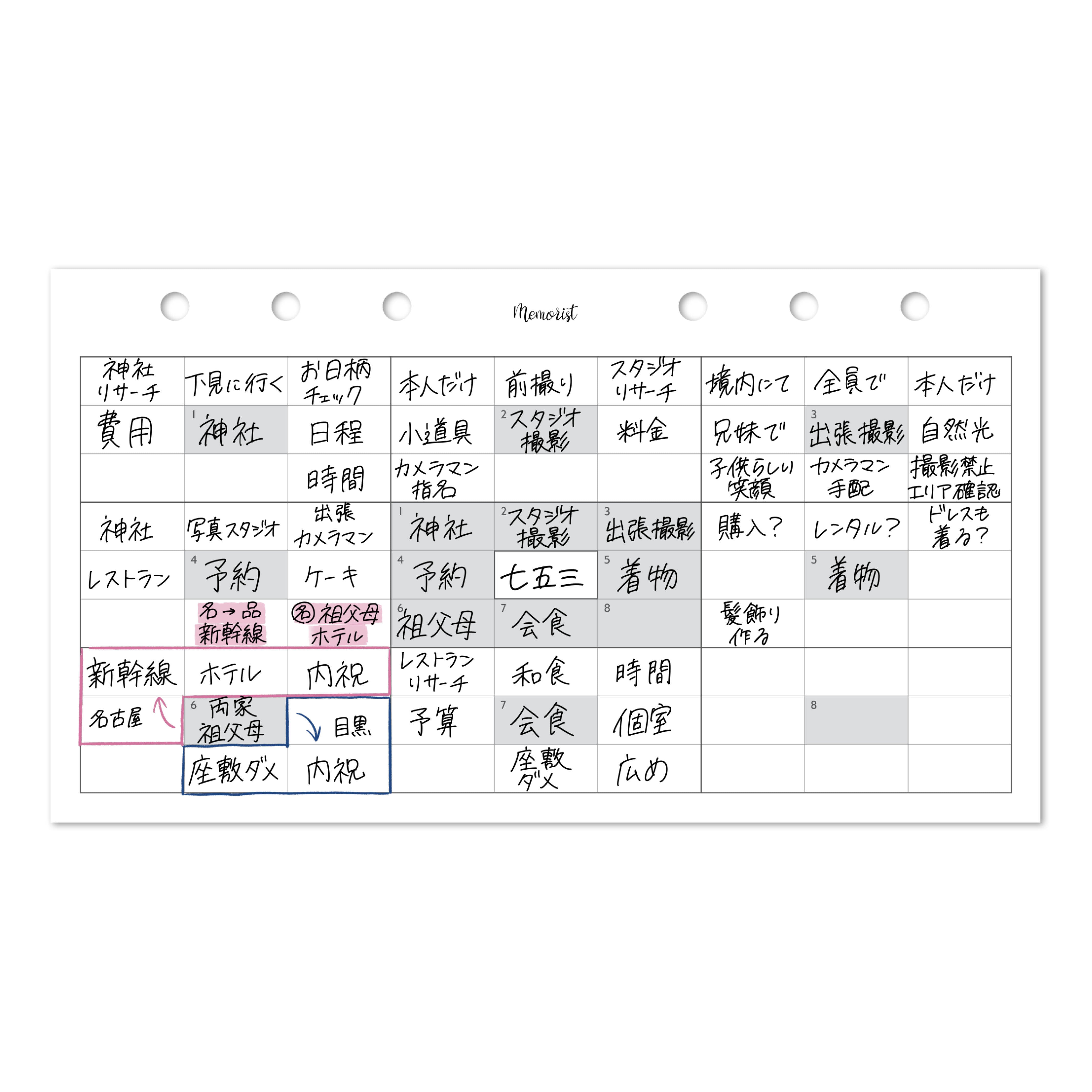 【マンダラチャート リフィル】を使って、七五三の準備に必要なことを整理!