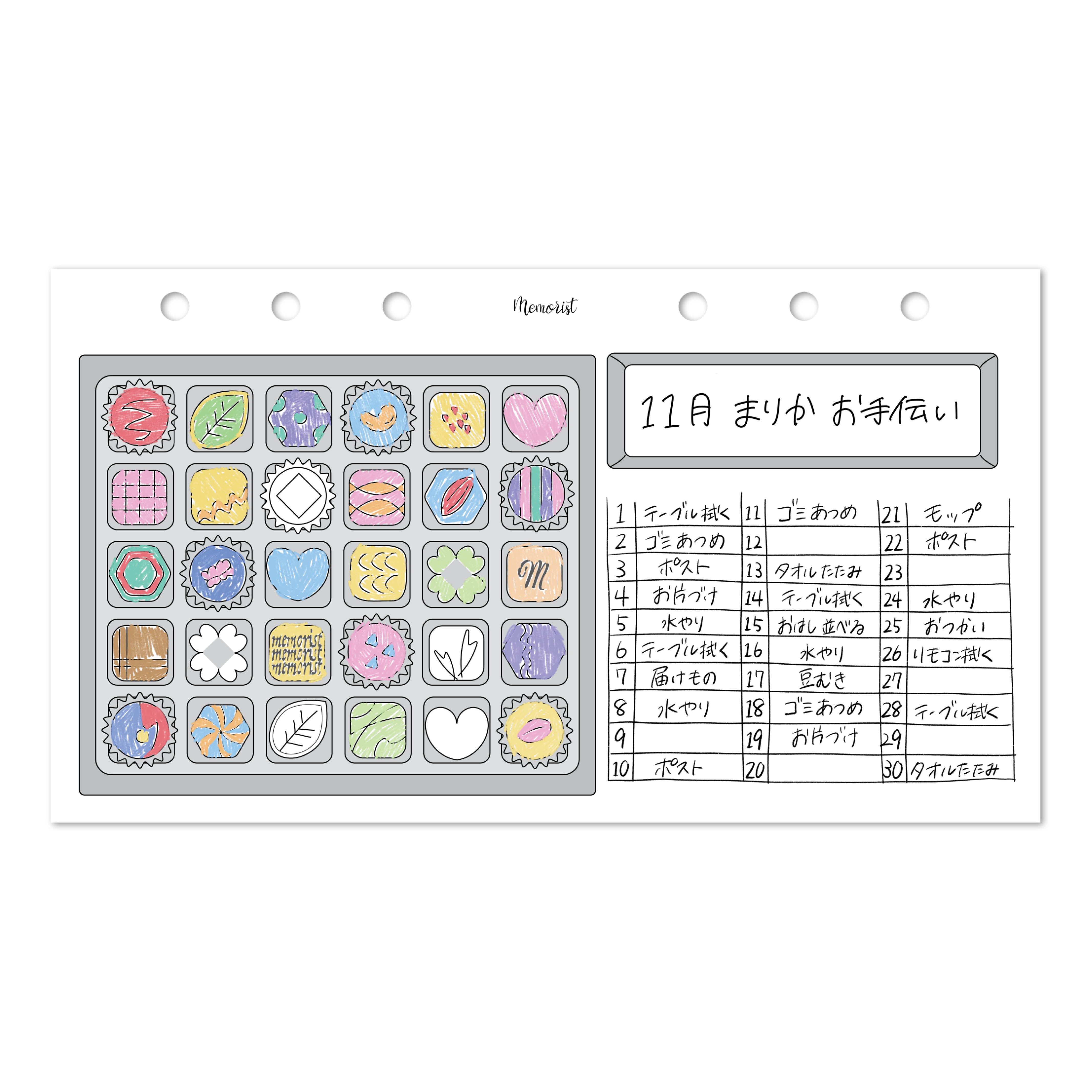 ママパパがお手伝い内容を記録し、子供がイラストを塗ることで親子のコミュニケーションも楽しみながら、お手伝いの習慣づけをサポート。