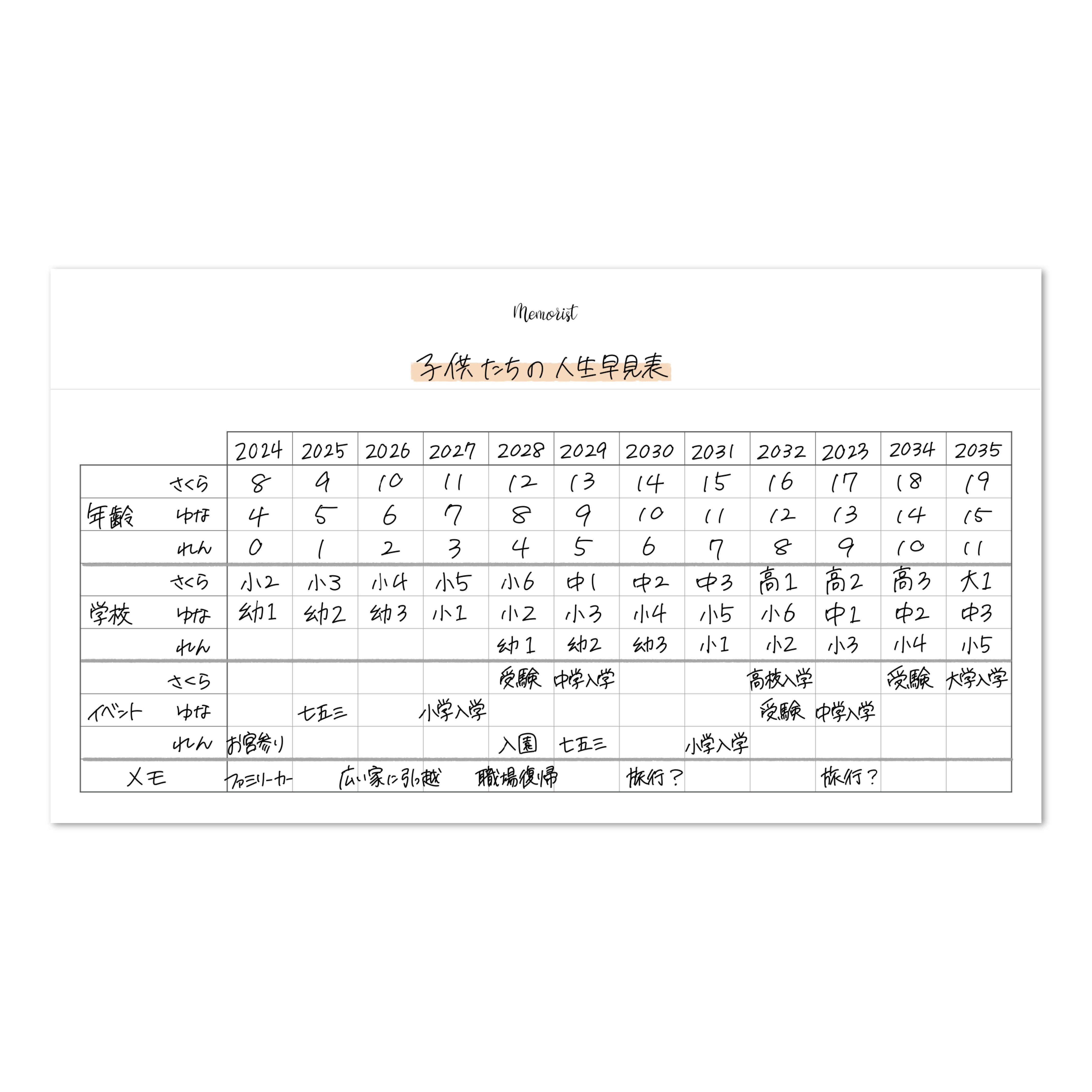 子供たちの成長と大切なイベントを一目で把握できる「人生早見表」を【チャート12 リフィル】で作ってみました!