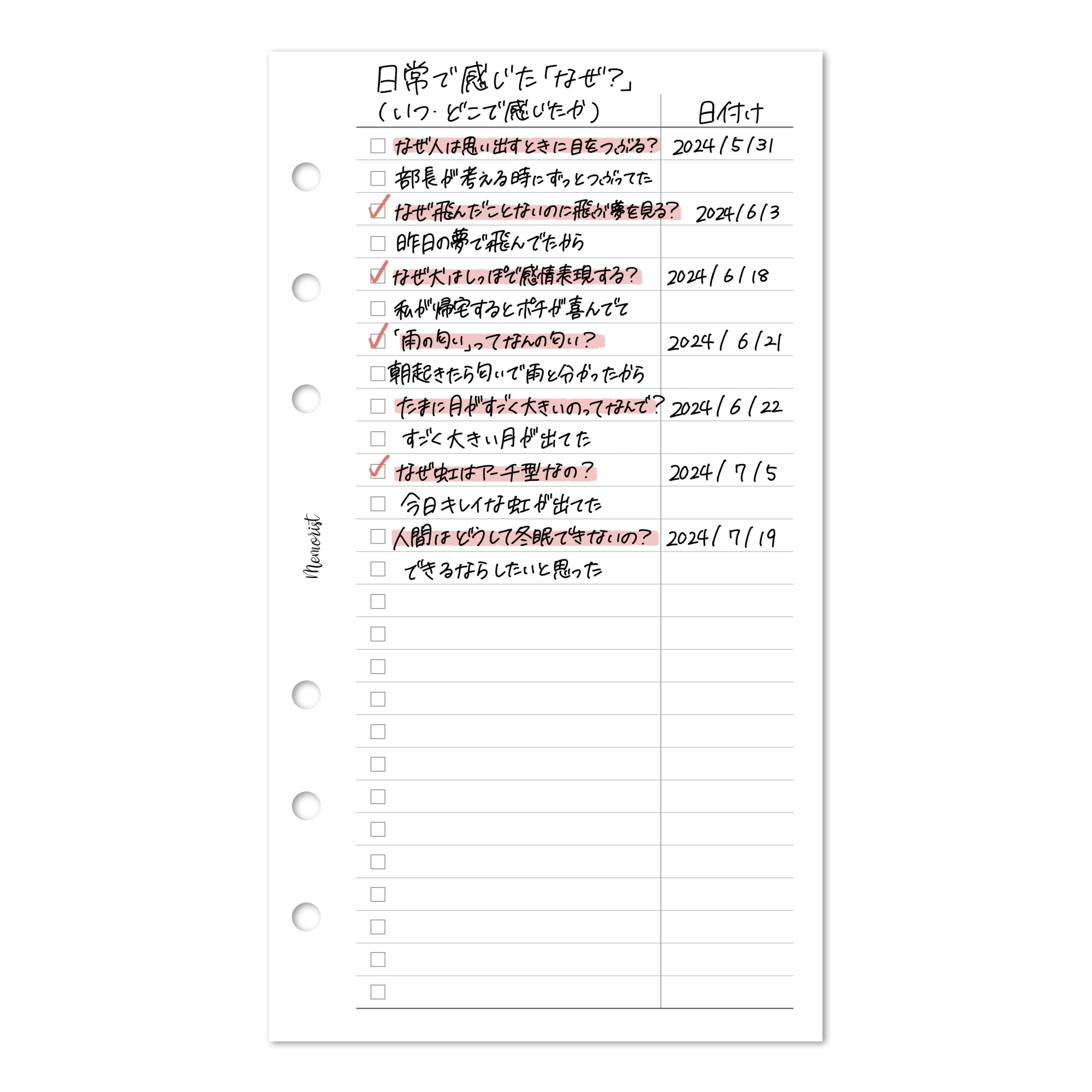 【To-Do リスト リフィル】を使って、日常生活でふと感じた疑問をリストアップ。